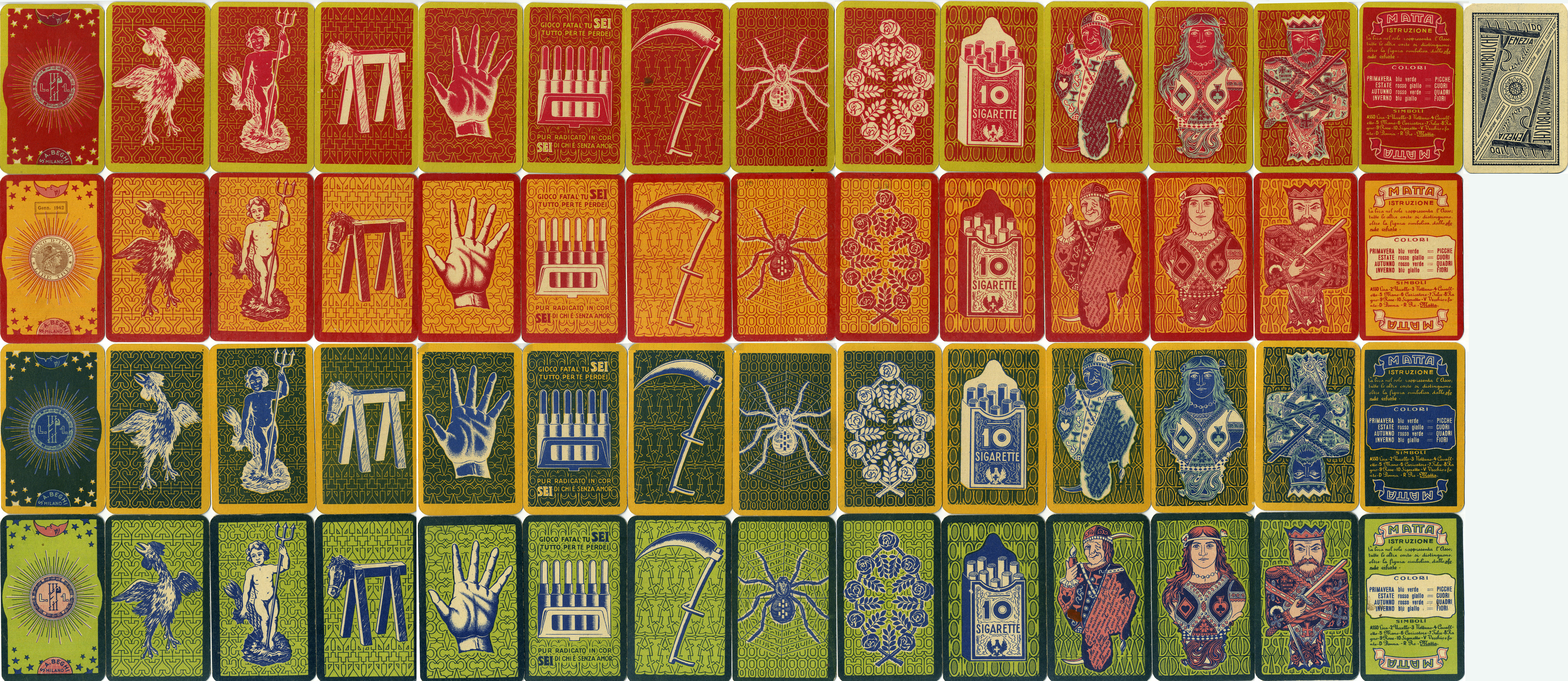 | 4972 | Carte da gioco Rastrello dette Simboliche (colori variati) | Beghi | 1942 |