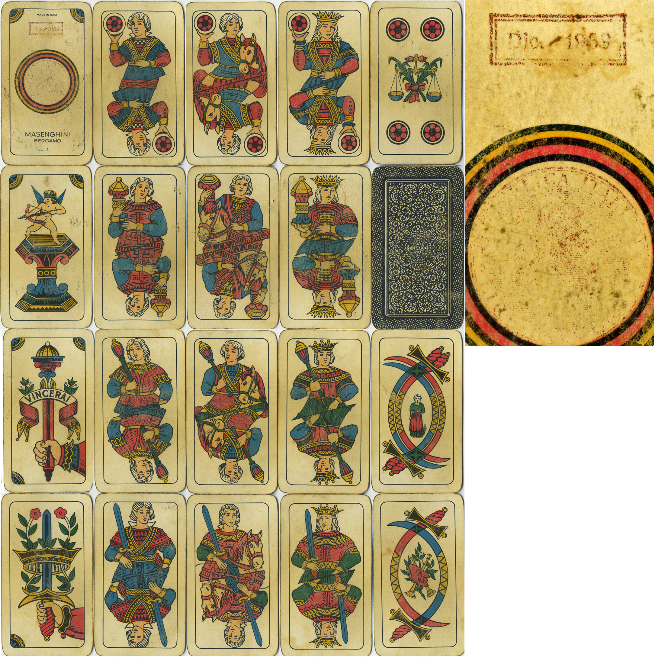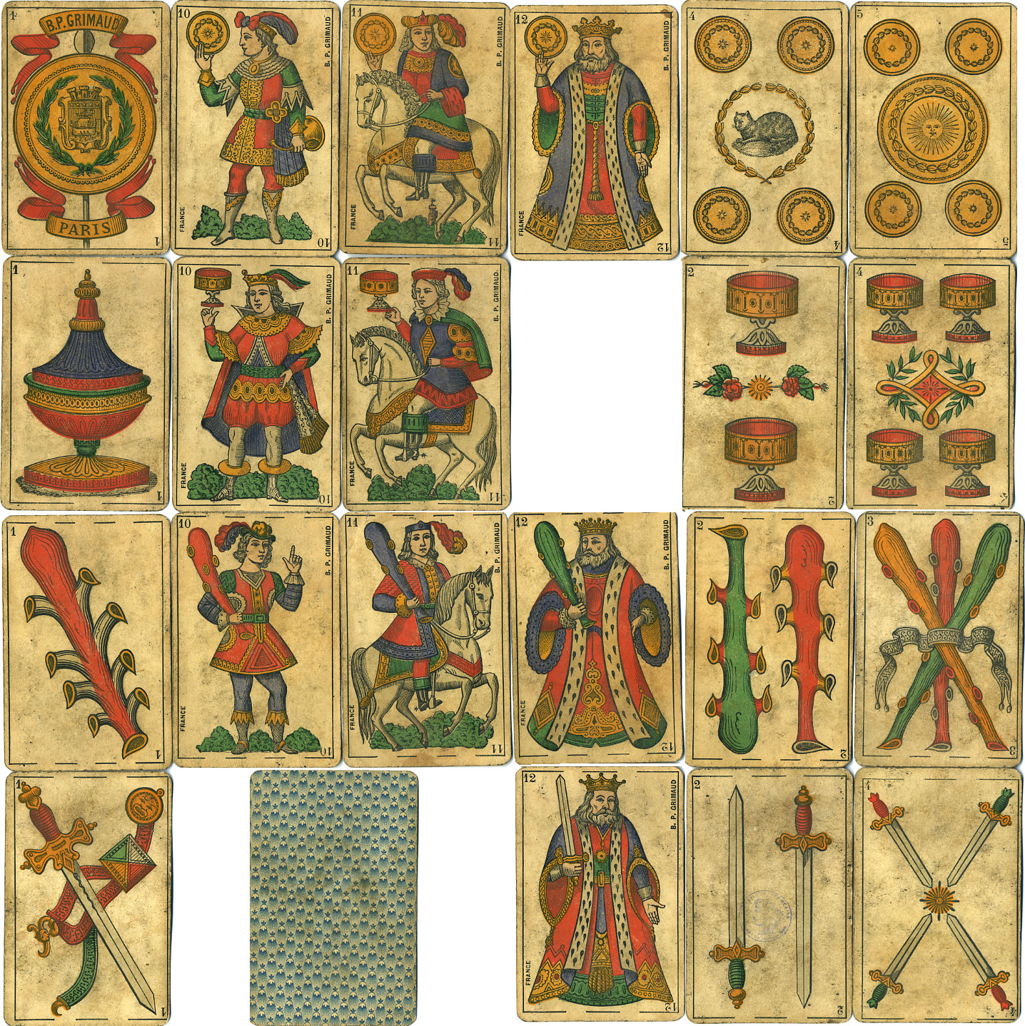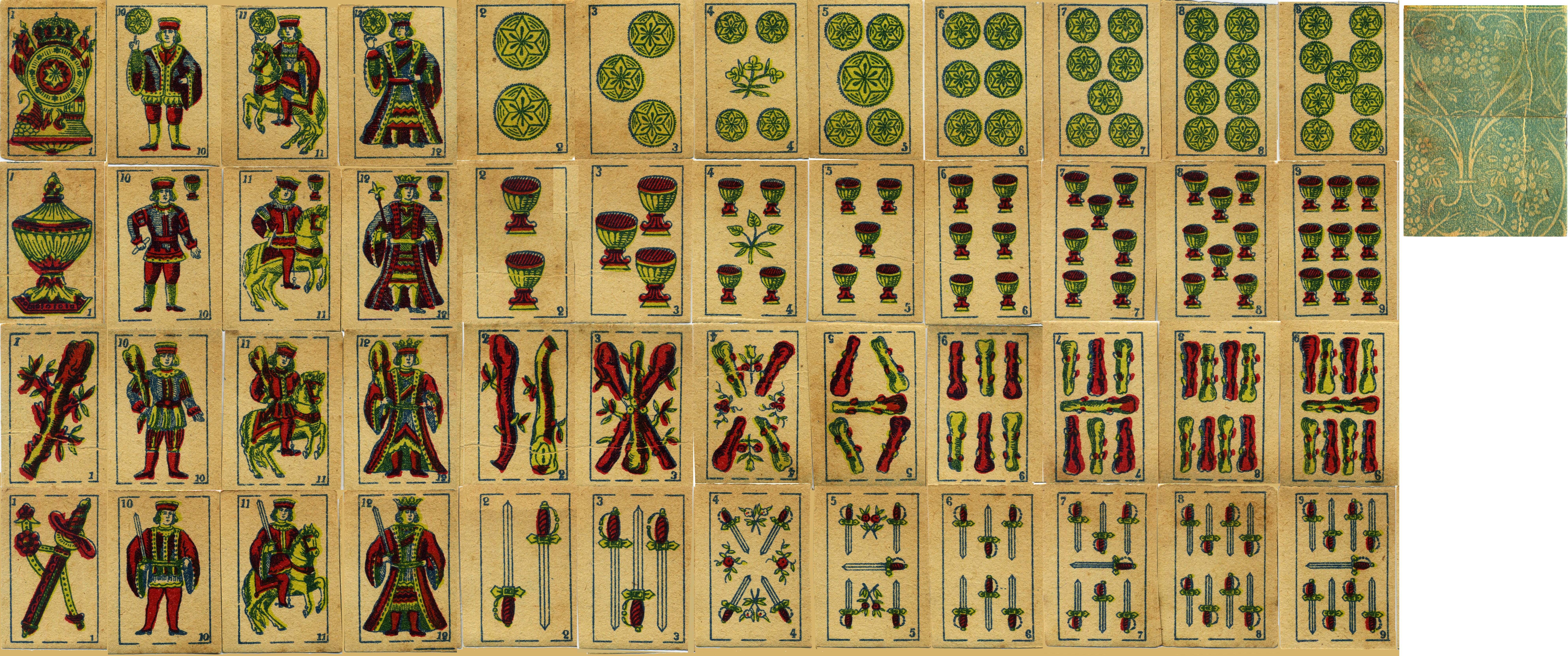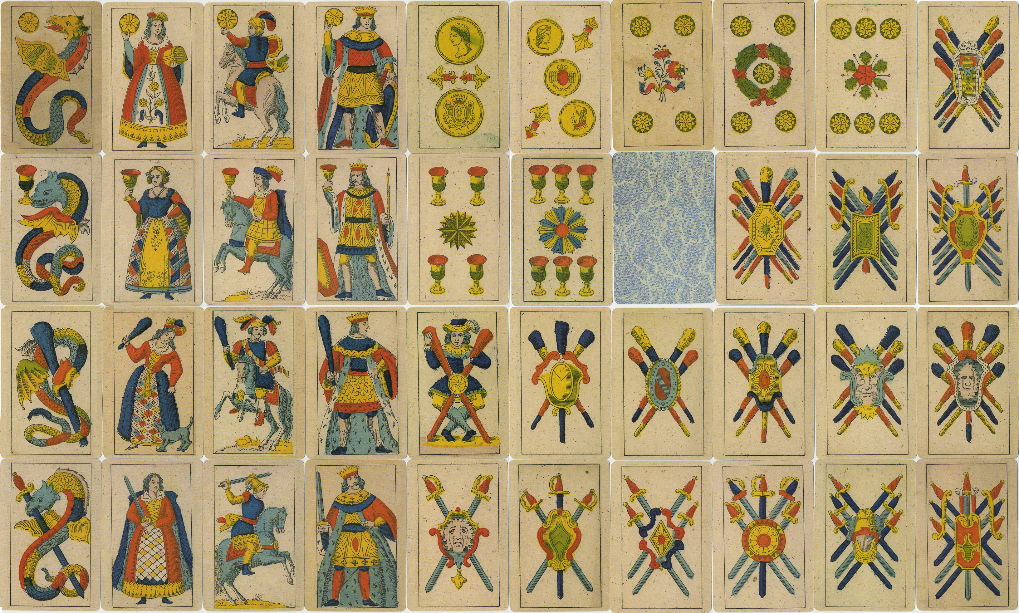 | 1731 | Cartes catalanes (43/48 manca Re coppe, 4 bastoni, 5, fante e cavallo spade) | Grimaud | 189x |