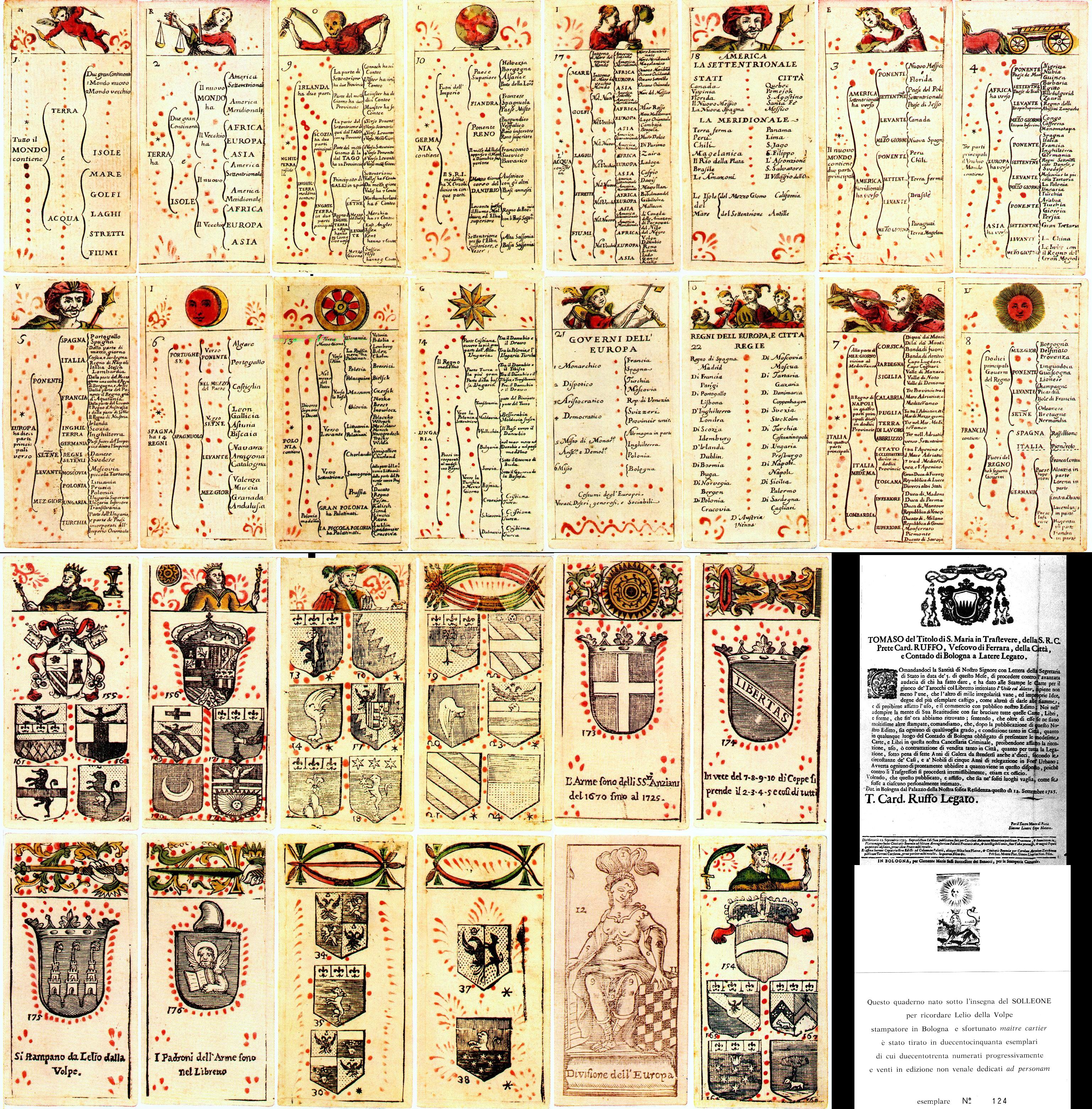 | 143 | L'utile col diletto n. 13 (o sia la geografia intrecciata nel gioco dei tarocchi) (originale Lelio Della Volpe 1725) | Solleone | 1975 |