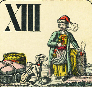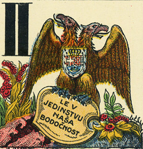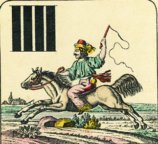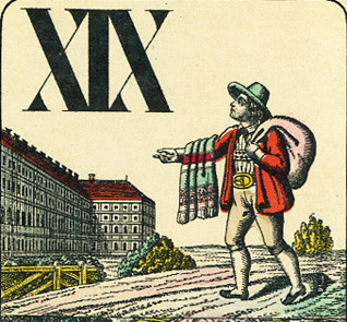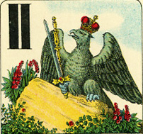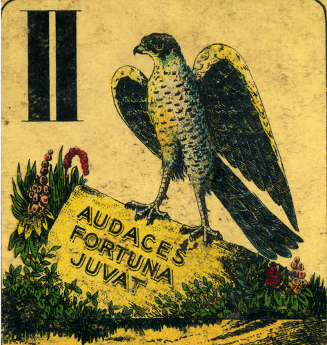 Audaces fortuna juvat con falco invece dell'aquila su un mazzo cecoslovacco degli anni '20 |
