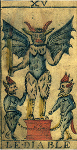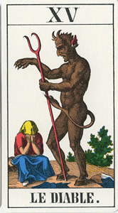 | XV Diavolo con corpo ricoperto di peli | I Escamoteur | XV Diavolo con persona a volto coperto |