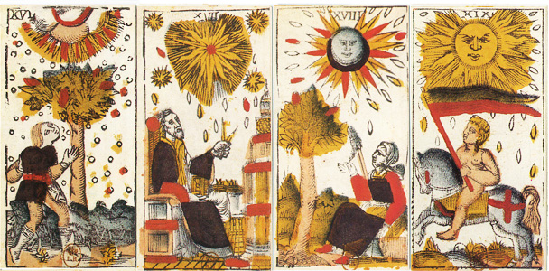 16 Torre (Foudre) Diavoli e dannati 17 Stelle Uomo con compasso 18 Luna Uomo che fa serenata