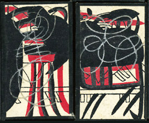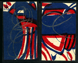 Il retro era di carta di colore uniforme, di solito marrone o nero. La carta del retro, ripiegata sul verso, creava al disegno un bordo molto marcato. Attualmente sia il retro che il bordo sul verso sono semplicemente stampati in colore uniforme.