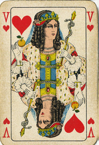 donna cuori con mela e serpente - donna quadri con ventaglio