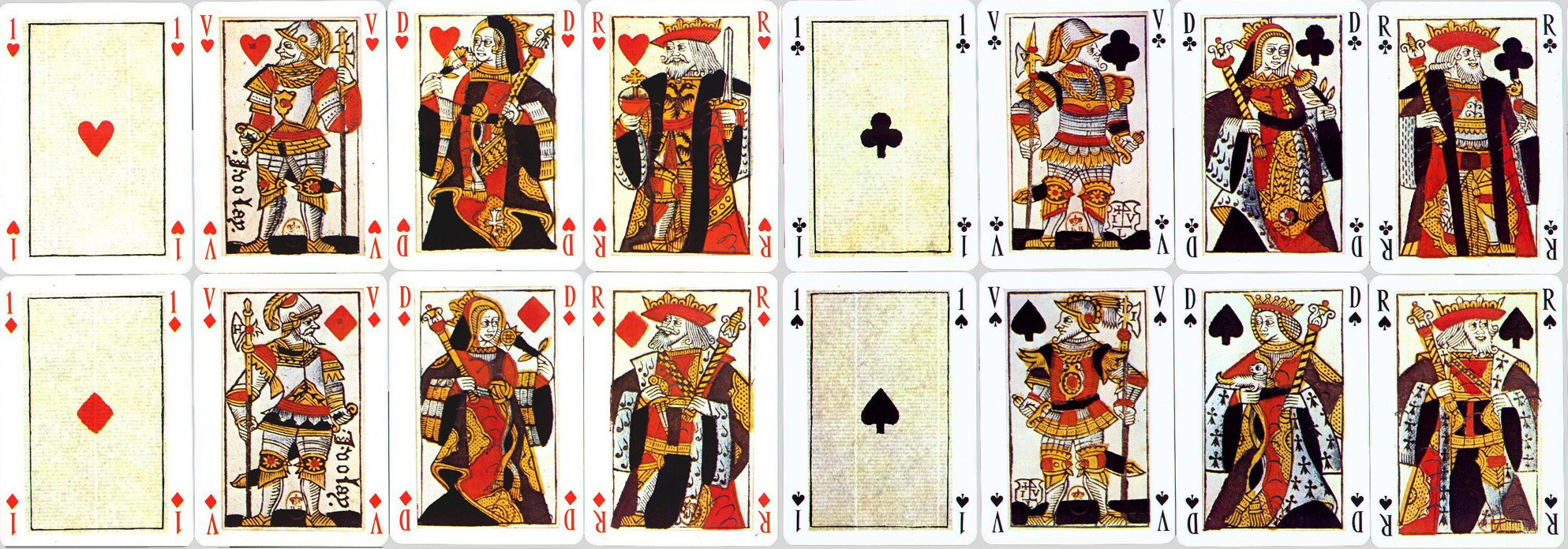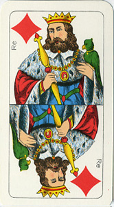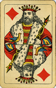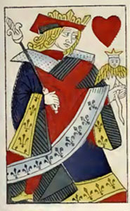 | Re cuori con uccello su braccio donne cuori e picche con scettro