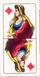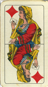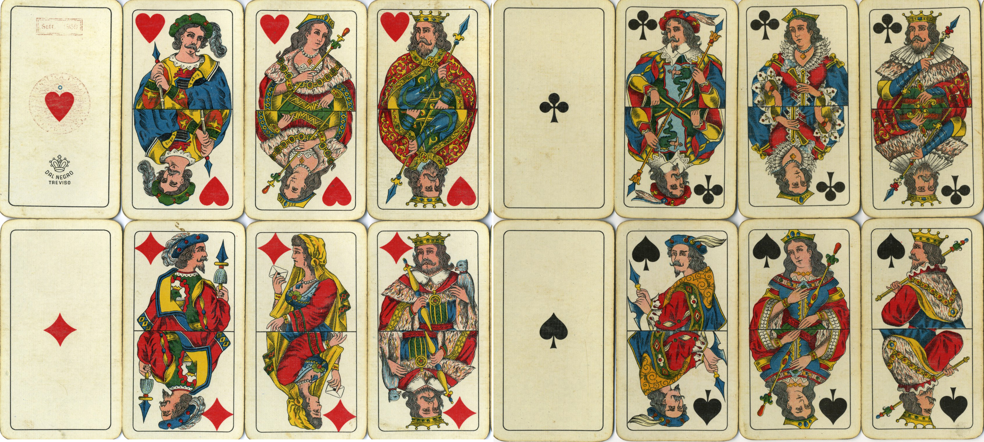 Visconti | Re fiori con uccello su braccio donna picche con cane in braccio