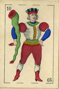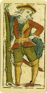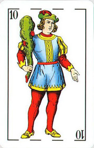 seme con un ramo laterale | Fante bastoni con seme lungo rivolto verso il basso | Fante bastoni impugna il seme alla base |
