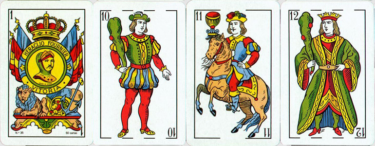 mazzo di carte Catalane moderne è variabile nei disegni. Qui