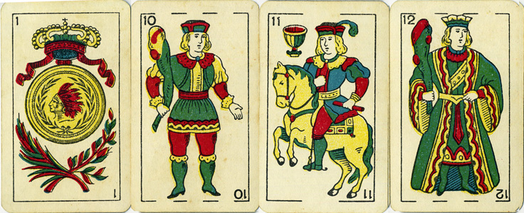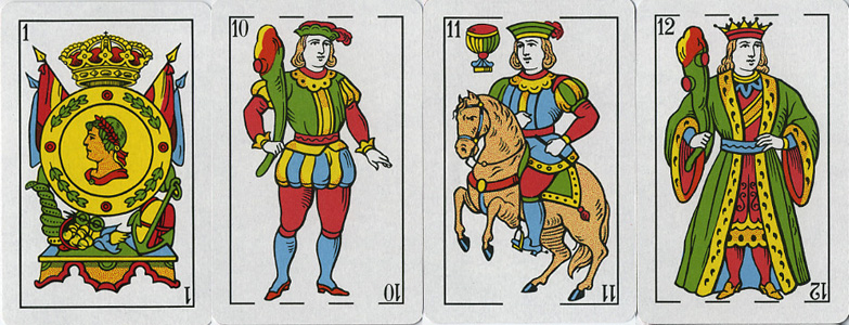 Altri mazzi, stampati di solito per le ex colonie, hanno un diverso asso di denari, senza la corona che lo sovrasta.