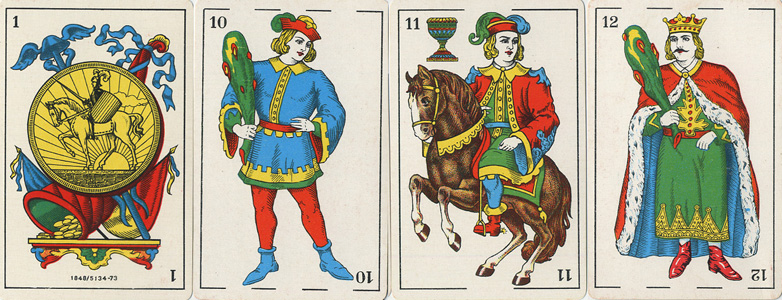 mazzo, come le coppe a forma di portauovo e il fante di coppe con