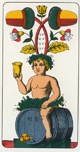 ghiande Bacco su una botte (poco visibile a figure speculari) |